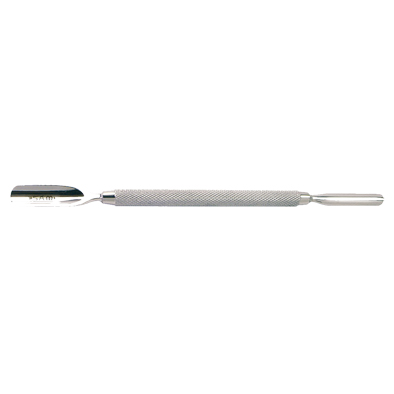 Pour repousser les cuticules avant d'aborder les soins de manucure. Instrument double.